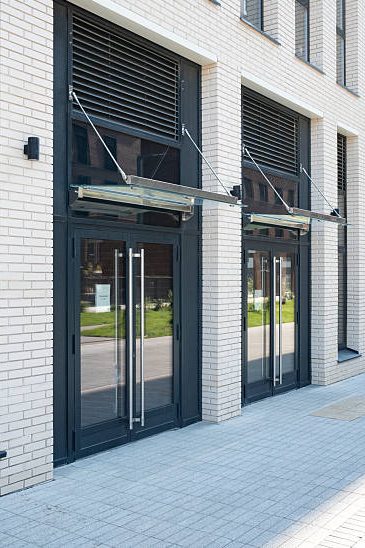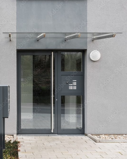 Bauart, Größe und Materialien werden passend zum Eingangsbereich und zur Fassade festgelegt.