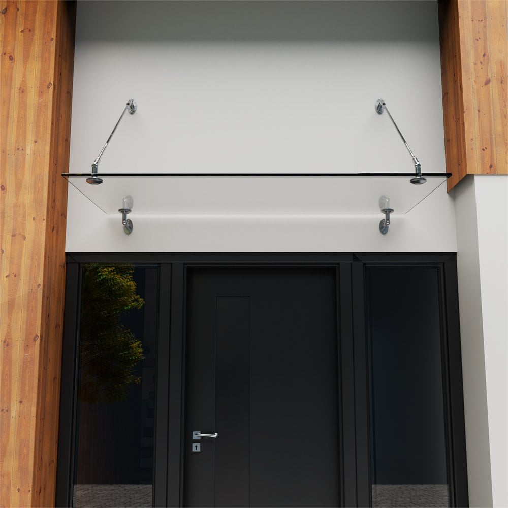 Sichere Verankerung im tragenden Mauerwerk oder Beton. Die Befestigung wird auf Untergrund, Ausladung und Gewicht des Vordachs abgestimmt.